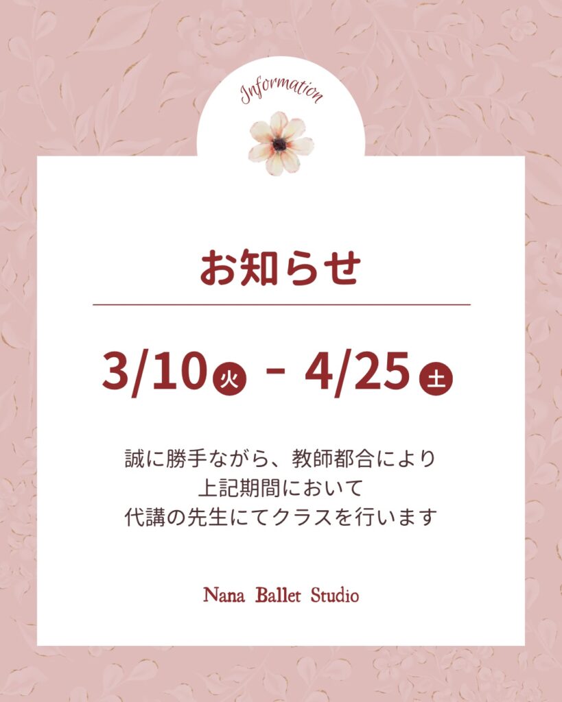 ※3月17日〜21日までは、全クラス振替済のため、お休みとなります。ご注意ください。
